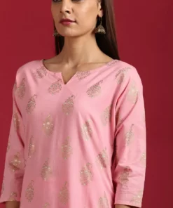 - Style:-Kurta Length: 44(inch), Bottom Length: 39(inch) | Pattern: Paisley | Occasion: Casual | Type: Straight | Sleeve Type: 3/4 Sleeve Regular Sleeves | Color: Pink